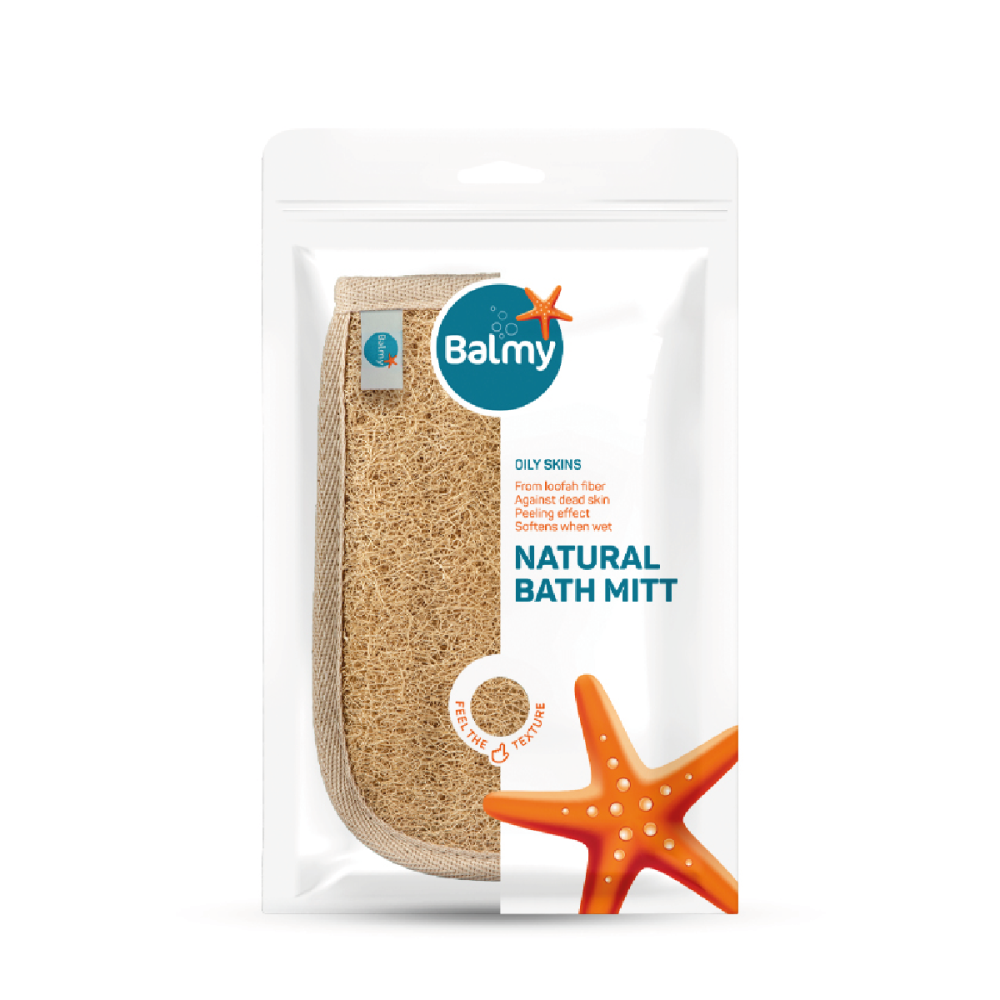 قفاز استحمام طبيعي مقشر للجلد الميت مصنوع من ألياف الليفة الطبيعية بنسبة 100%.