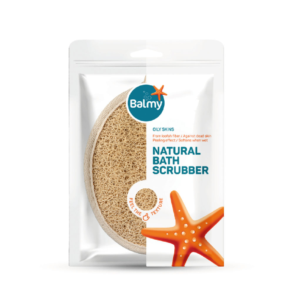 لوفة استحمام طبيعية دائرية مقشرة للجلد الميت مصنوع من ألياف الليفة الطبيعية بنسبة 100%.